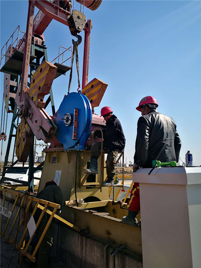首先,該裝置取消了易造成人員傷害的皮帶機構,使系統(tǒng)運行更**、更環(huán)保??刂葡到y(tǒng)采用了變頻器電阻回饋制動,在油井出現(xiàn)桿斷失重時,控制系統(tǒng)自動斷電,電機制動減速,避免慣性加速引起的抽油機井**事故。其次,該裝置因采用了永磁同步電動機,大大提高了傳動效率和功率因素,綜合節(jié)電率在10%以上。該裝置具有以下特點: